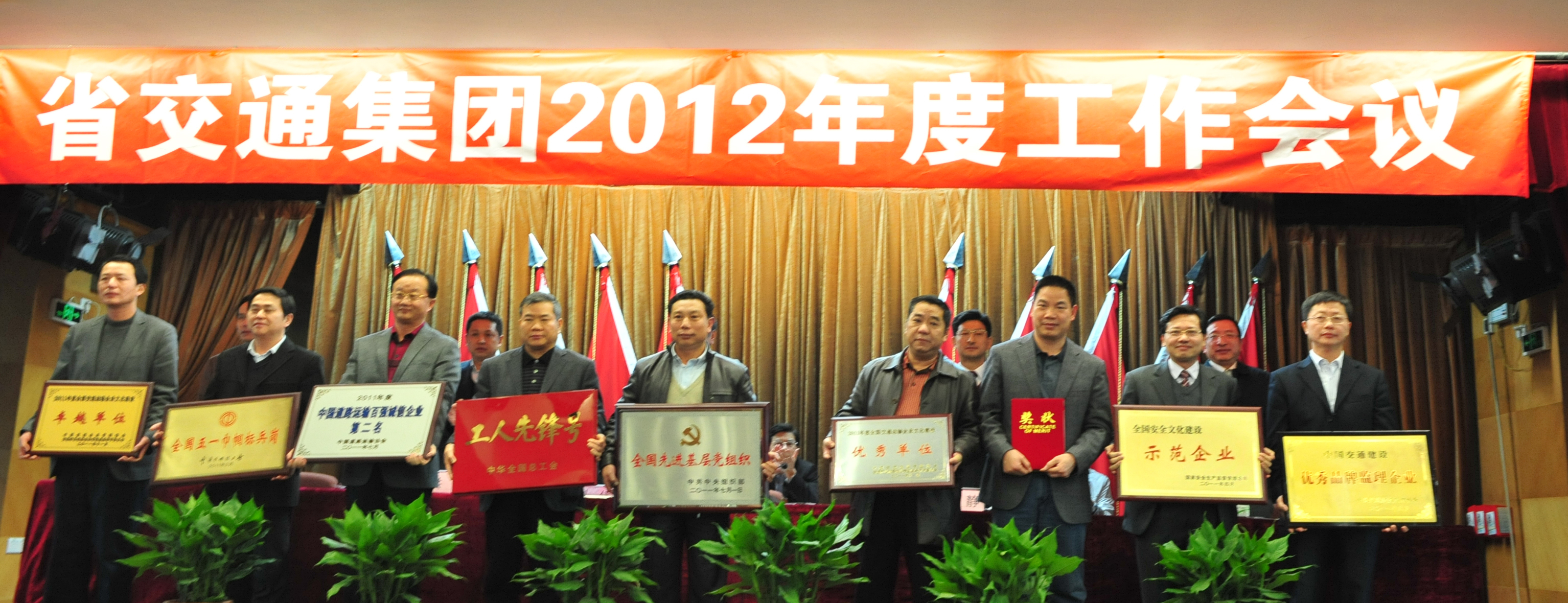 2月13日下午,省交通集团在交通大厦31楼召开2012年度工作会议。会上,集团李静总经理作了题为《坚持“好”字优先,锐意改革创新,大力提升集团经营管理水平》的工作报告,集团朱小灵董事长作重要讲话。会议还特别对2011年度荣获国家级奖励的单位和个人举行了颁奖仪式,我司李江山董事长代表公司受领“全国交通运输企业文化建设卓越单位”的奖牌。 省交通集团本部和各直属单位领导班子成员出席会议。去年,省交通集团系统共有7家单位荣获“全国交通运输企业文化建设优秀单位”称号,仅我司被评为“全国交通运输企业文化建设卓越单位”。