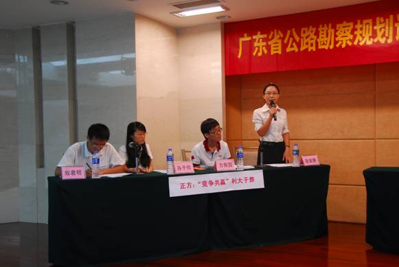 本次辩论赛由公司党委主办,全司十二个党支部组成四支代表队参赛,辩题围绕公司核心价值观确定,分别是“竞争共赢是利大于弊还是弊大于利”、“先奉献后索取是利大于弊还是弊大于利”。经过激烈的角逐,由第三党支部、勘察分公司党支部、和立公司支部组成的“三队”,由第四党支部、路桥分公司党支部和监理公司总支组成的“四队”分别荣获优胜队。赛场气氛热烈而活跃,赛后,省交通集团党群工作部毛海明副部长为辩论赛做点评,公司李江山总经理对“竞争共赢”和“奉献求真”的价值观作了补充阐释,得到现场党员的一致认同。
