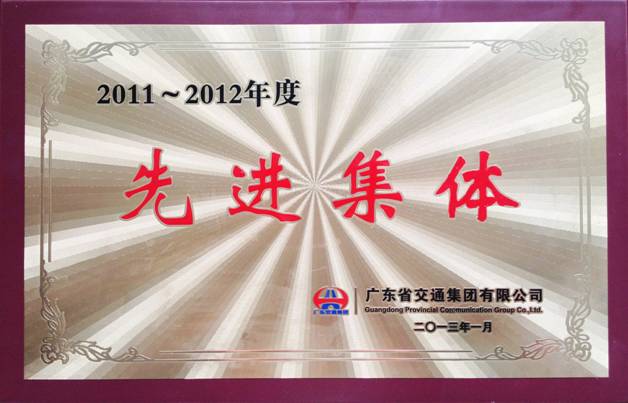 热烈祝贺我司被广东省交通集团有限公司授予“2011—2012年度先进集体”荣誉称号,与此同时孙向东副总工程师、市政与交通工程设计部汪超主任荣获“2011—2012年度先进生产(工作)者”荣誉称号。