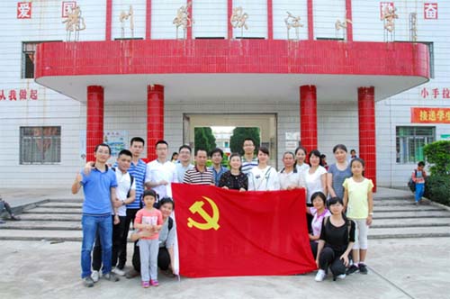 搭建一个“图书角”,分享一座“精神粮仓”——第二党支部党员同志们继续满怀着爱心和热情,践行他们服务山区留守儿童的创想。2017年5月5日,第二党支部党员同志们历经五小时车程,跨越三百里路程,到达河源龙川黄布镇欧江小学,走进山区校园,开展捐赠“爱心图书角”活动。这次活动中,第二党支部为欧江小学9个班级各创建了图书角,捐赠价值接近两万元。小小的图书角,装载的不仅是书籍和知识,更是支部党员同志们扶贫助困、捐资助学的爱心,以及他们对山区儿童健康成长的热切期盼。