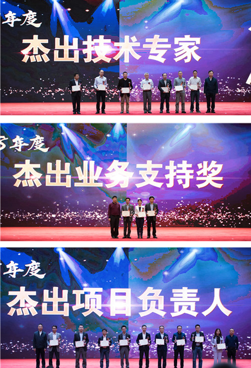 第二部分是对2018年度在生产经营、职能管理等各项工作中表现优秀的各类先进集体和个人进行了集中表彰。