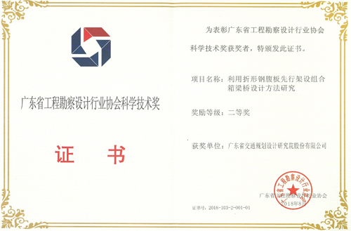 《利用折形钢腹板先行架设组合箱梁桥设计方法研究》荣获二等奖,获奖人员:卢绍鸿、梁立农、刘玉擎、孙颖、何海、吴玉刚、曾田胜、黄毅东、梁志勇、刘桂红。