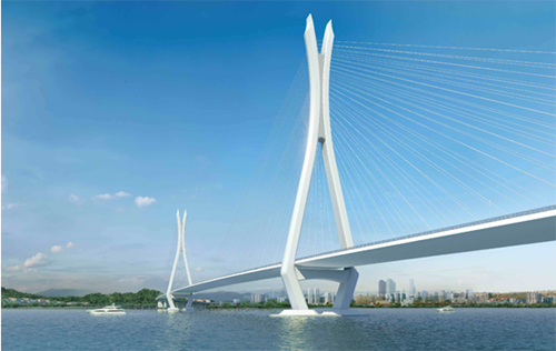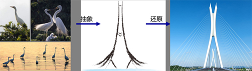 (2)桥塔采用独创性的白鹭塔方案。创意灵感来源于佛山市白鹭湖风光,以优雅对唱的白鹭形象勾勒出桥塔柔和的外形,景观效果突出,与佛山文化高度契合。